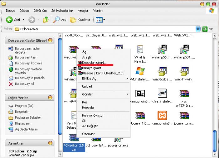 • Daha sonra indirdiğimiz dosyaları site klasörümüze çıkartıyoruz.